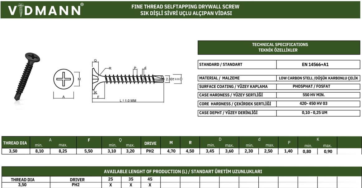 Vidmann, bağlantı elemanları sektöründe kalite, güven ve sürdürülebilir üretim anlayışıyla faaliyet gösteren öncü bir firmadır. Kurulduğu günden bu yana, başta inşaat ve sanayi sektörü olmak üzere birçok alana yönelik vida ve bağlantı elemanları üretimi ve tedariği sağlamaktadır.